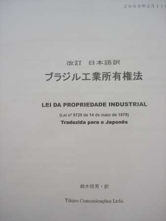 法 律第9279号は、パリ条約と並び、ブラジルにおける特許、実案、商標及び意匠の各種手続、保護、移転解約や犯罪について定めている基本法。 10年前に弊社Tihiro Comunicacoesが刊行した「ブラジル工業所有権法」(鈴木信男訳)に、昨年末までの全ての改定・変更を加えた最新版。対訳なので日本語とポルト ガル語の内容が一目瞭然になっています。コピー刊行物(簡易仕上げ)A4サイズ54ページ,価格は70レアル