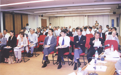 恒例の当所総務委員会主催「業種別部会長懇談会」は、2月6 日午後3時から3時間余にわたり10部会長、1副部会長出席の下、安田保険(株)講堂で行われた。主題は「ブラジル経済2002年下期回顧と2003年上 期展望」。副題に「ルーラ大統領指導下のブラジル政治、経済が各部会や業界に与える影響」と「日伯間のFTA締結の必要性、その与える影響」。