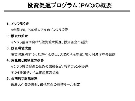それから経済成長に必要なインフラ整備、このへんの遅れから、GDPの成長率、これはまあワールドカップや選挙というかなり大きなイベントがあったんですが、結果としては政府の目標を相当下回る2.7%程度、ここに留まったと。