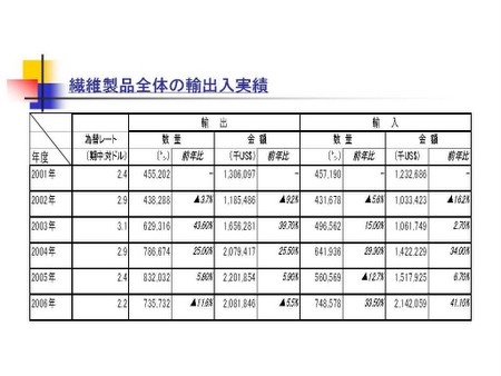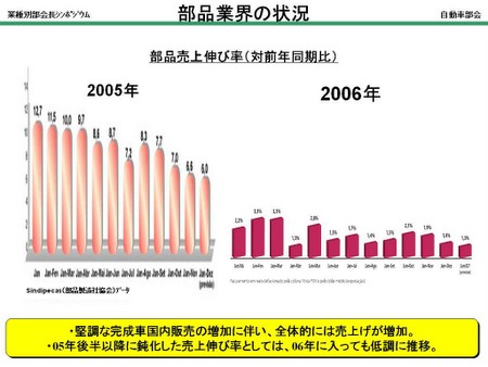 引き続き保険業界の方に移って参りたいと思いますが、2006年の業界の統計数値を見てみますと、この表の通りでございまして、全種目の収入保険料、これ は収入保険料の一番下のほうの合計を見ていただきますと113.2%、つまり13.2%増加しております。つまり市場全体は非常に拡大傾向にあるというこ とでございます。
