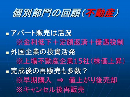 一方で急速な貸し出しの伸びということはですね、支払いの遅延、いわゆる不良債権ですね、この増加にもつながっておりまして、法人ではここにありますよう に2.7%、それから個人で7.6%という比較的高い数字になっておりますが、これはまだまだ銀行の貸し出し金利が高水準にとどまっているという一つの要 因かというふうにも思われます。
