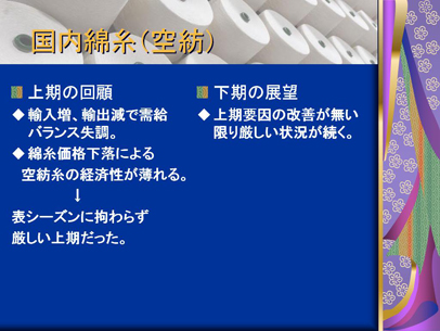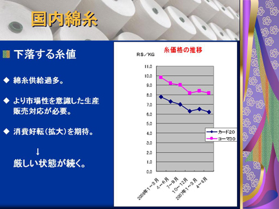 3つ 目は、為替変動に対する対応ができないということで、実際取引の場合は契約を結んだ時の取引価格と、実際に物が入ってきた時の為替レートを適用した価格が あるわけですけども、そういった為替相場の変化、当然変化があるわけですけど、そこに対応できないと。契約時点の為替を適用しなければいけないようなルー ルになっているということです。