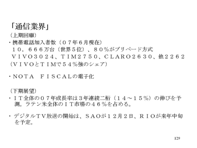 1つ 目は、業界ごとに異なるマージン比率パーセンテージの適用と。これはどういうことかと言いますと、先程もちらっと出てたんですけど、マージン比率というの は税制の計算にあたって非常にキーポイントになるんですけども、これがブラジルの場合は業界ごとのいろんな特殊性があるんですね。マージンがどれくらい取 れるか、要するに利益幅がどれくらい取れるかと、大体業界のある程度トレンドがあるわけなんですけども、そういったものを結果的に一切無視せざるを得ない ような固定的なマージン比率が設定されていると。OECDの加盟国の法律であればその辺はある程度フレキシビリティを持っているんですけれども、きめつけ的なマージン比率が設定されている、これはやっぱり問題だということで、これは何とかしてほしいというのが1点目。