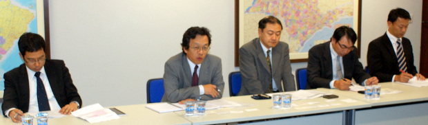 左から金丸副部会長(メタルワン)/西岡部会長(三菱重工)/田中副部会長(京セラ)(Foto: Rubens Ito / CCIJB)