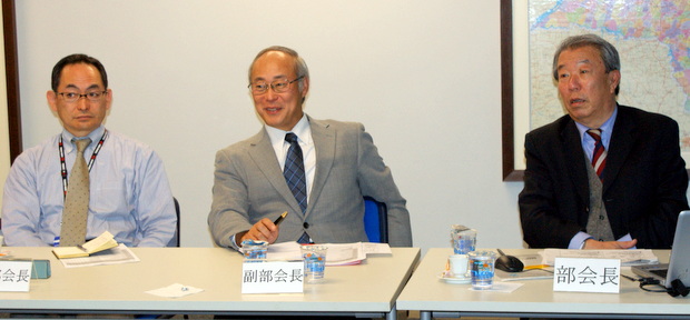 8月21日に開催される業種別部会長シンポジウムの発表資料作成のために、化学品部会(藤下温雄部会長)では2012年8月9日午後4時から6時まで、参加者が自社の今年の上期の回顧と下期の展望を発表した。