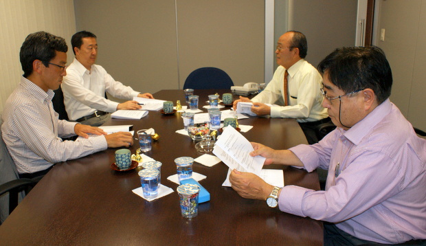 参加者は澤田吉啓委員長(ジェトロ)、都築慎一副委員長(デロイト)、井上徹哉副委員長(ジェトロ)、平田藤義事務局長、日下野成次総務担当