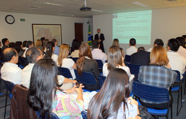 初めにPinheiro Neto Advogados 弁護士事務所のチアゴ・テノ労働法部門アソシエート弁護士が「ソーシャルメディア - 雇用主は社内使用を禁止すべきか使用ルールを設けるべきか」について講演。フェイスブック、Twitter、Orkut、ユーチューブなどインターネットを前提とした技術を用いて、発信された映像、音声、文字情報にあるコンテンツを、当該コミュニティサービスに所属している個人や組織に伝えることによって、 多数の人々や組織が参加する双方向的な会話へと作り替えるソーシャルメディアの勤務時間内での使用について、盛んに議論が行われており、禁止している企業もあれば社内規定を設けている企業もある。