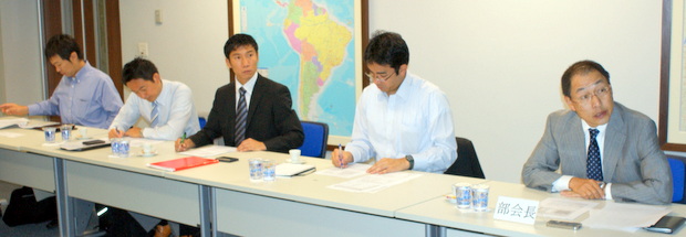 また輸入は自動車が大幅に減少、輸入先では中国が米国を抜いてトップ、日本は7位、アジアからの輸入がトップ、対日輸出では鉄鉱石並びにトウモロコシが大幅に減少、米国の旱魃被害でブラジルからのトウモロコシ輸入が急増、日本からの輸入では圧延機が急増したが、自動車や工業製品は減少、対内直接投資は米国がトップ、日本は大幅に減少、中国は第三国経由の対内直接投資、鉱業並びに農畜産部門への直接投資は減少したが、サービス部門は増加したことなどを伊吹部会長が説明、参加者は積極的に意見交換をおこなった。