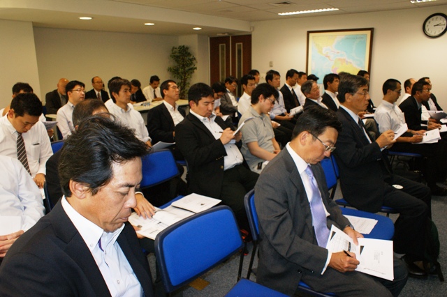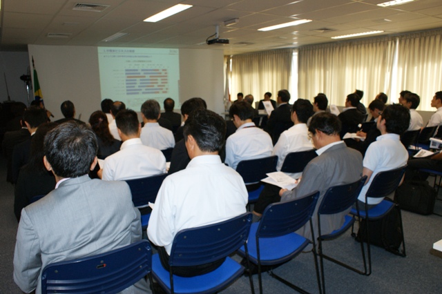 ジェトロ・サンパウロ事務所(澤田吉啓所長)とコンサルタント部会(澤田吉啓部会長)共催の中南米市場セミナー(チリ・ベネズエラ)が2013年3月12日午後2時から3時30分まで、会場一杯の55人が参加して開催された。