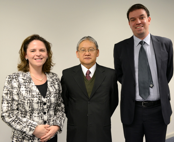 左からPinheiro Neto Advogadosのテレーザ・クリスティーナ・カルネイロ・シルヴァ・シニア弁護士/司会の山内正直副委員長/TozziniFreire Advogadosのアンジェロ・アントニオ・カブラウ労働問題弁護士