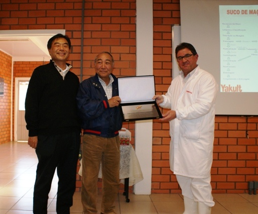 26日早朝コンゴニャス空港を出発したグループはフロリアノポリス空港に到着後、バスで標高1300mにある人口16万余の都市ラージェス市へと向かった。昼食後、同市にあるヤクルトのリンゴジュース工場に到着。アンジェロ・ミゲル・バルボーザ工場長と品質管理担当のフェルナンダ・ボルジェス氏に迎えられた。先ずレクチャールームでバルボーザ氏からブラジルがリンゴ生産世界第9位、1980年代JICAの栽培技術支援でブラジルでもふじリンゴ生産が可能となった事や工場概要の説明を受け、その後2グループに分かれ6万6千平方メートルの敷地内を見学。78年にヤクルト社を中心に設立されたフルッチカーザ社を92年にヤクルト社が吸収合併、混濁タイプとクリアタイプのリンゴジュースの他リンゴのエッセンスも製造、消費者向けはもとよりデザート等加工食品の利用を目的に企業向けへも販売している。60トンのリンゴが収容可能な原料投入槽、洗浄、トリミング、破砕、ベルトプレス(搾汁)、パスチャライゼーション(殺菌)、冷却機の工程を一通り見学した。徹底された衛生管理と最新技術による最適化で少人数でも稼働できるストラクチャーが注目された。また、見学中ヤクルト商工社長の天野一郎会議所副会頭からの補足説明もおこなわれた。