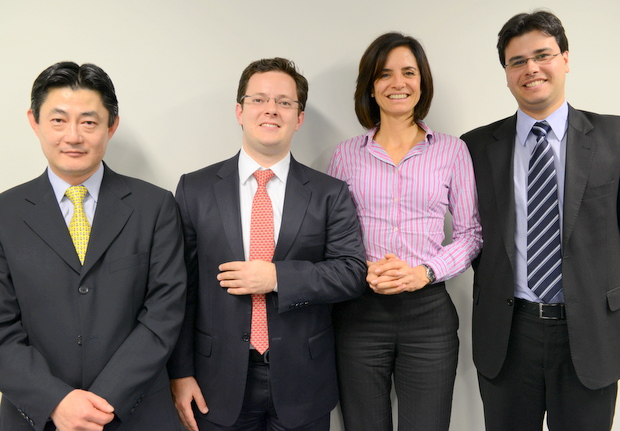 左からErnst & Young の矢野クラウジオ税制部門コンサルタント/Honda Estevão Advogados 弁護士事務所のルイス・ロベルト・シルヴァ弁護士/同事務所のリタ・デ・カシア・テイシェイラ共営者/Deloitte Touche Tohmatsu 企業コンサルタントのペドロ・パウロ・メンデス社会保障部門マネージャー