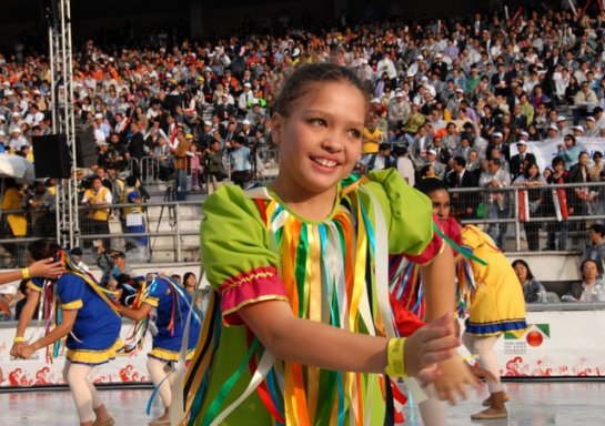 6月21日のブラジル日本移民100周年記念式典に皇太子殿下ご臨席のもと、生憎の小雨模様にも関 わらず、サンボドロモ会場に3万人が参加して盛大に開催、100周年記念協会の松尾治委員長は開会宣言で「約5年前から準備をしてきた。ブラジルにおいて 日本文化を継承している姿を見てもらいたい」と述べた。