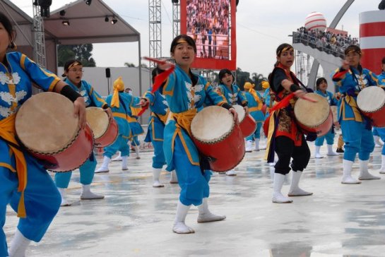 続いてサントス港に停泊中の海上自衛隊のパレード、州警騎馬隊の行進、3,000人を超すコーラス隊の両国の歌の大合唱、1,200人による100周年記念踊り「海を渡って100周年」、最後に1,000人太鼓の演奏で第1日目は大成功裏に終了した。