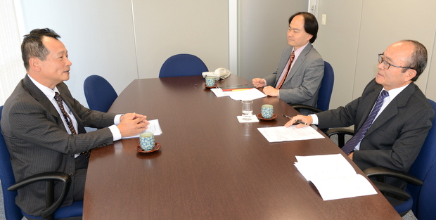 左から上野秀雄委員長/日下野成次総務担当/平田藤義事務局長