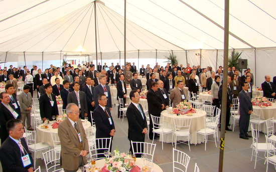 その後来賓並びにカンジコ社代表がテープカットの後で鏡割りが行なわれて、豊田通商本社の鈴木務部長がカンジコ社の今後の発展を祝って乾杯の音頭をとった後で昼食会が開催された。