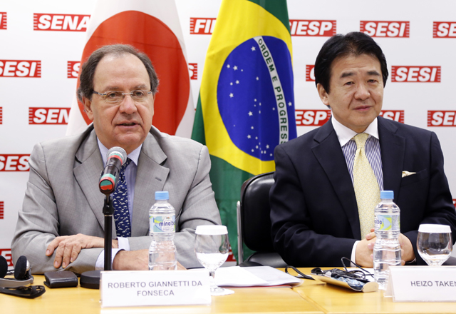 サンパウロ州工業連盟(FIESP:パウロ・スカフェ会長)主催、サンパウロ総領事館 (福嶌教輝総領事)並びにブラジル日本研究者協会(SBPN)後援で、2013年11月12日午前9時30分から正午過ぎまでサンパウロ州工業連盟講堂に 120人が参加して、「日伯経済関係の将来セミナー」を開催、特別ゲストには、竹中平蔵元金融担当大臣・経済財政政策担当大臣が参加した。