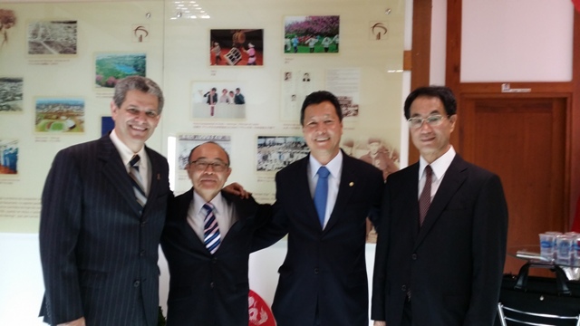左からバーロス元市長、平田事務局長、西森ルイス下院議員、池田敏寿雄在クリチバ日本国総領事