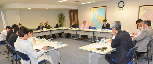 左からバルボサ・フェリペ氏/竹内パウログループ長/井上直氏副グループ長