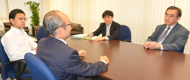 左手前から平田藤義 事務局長/天谷浩之 機能強化委アドバイザー/日本商工会議所 橋爪孝徳 国際部副主査/ 赤木剛 国際部長