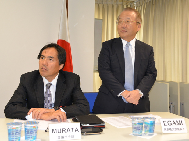 左から村田俊典会頭/異業種交流委員会の江上知剛委員長