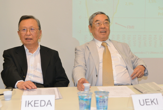 左からアキヒロ・イケダ氏(サンパウロ大学教授)/シゲアキ・ウエキ元鉱山動力大臣