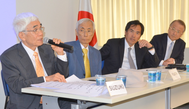 左からアキヒロ・イケダ氏(サンパウロ大学教授)/シゲアキ・ウエキ元鉱山動力大臣/鈴木孝憲氏