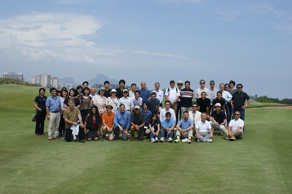 バーハ地区で昼食をすませ、シグマックスの堤さんの協力で難しいといわれているゴルフ会場の視察が実現した。112年ぶりの競技復活となるゴルフコースが新規建設中で、その建設に携わっているデザイナーの緒方信行氏とコース設計者のジル氏が一行を待ち受け、彼らの案内のもと約1時間ゴルフ場を歩いた。設計や施工に携わる方々との意見交換はゴルフファンにはまたとない貴重な経験となった。自然を取り入れたコースは広く、平面に広がりきれいに見えた。大会後はパブリックコース、またツアーを呼ぶことなども計画されている。