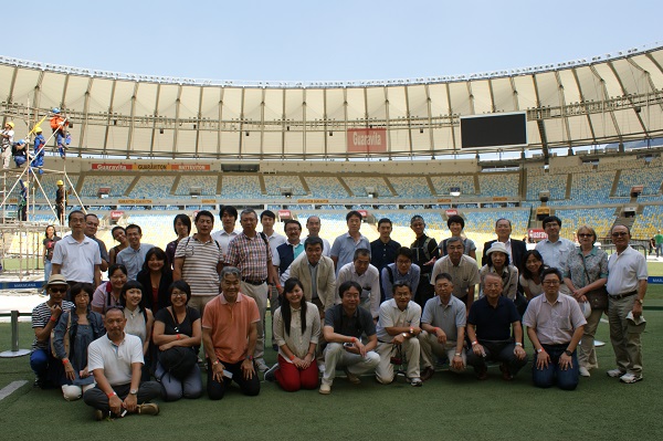 その後、バスでボタフォゴのレストランへ移動したが、連休前ということもあり移動には時間がかかった。また、昼食後の移動も渋滞はあったが、サンボドロモに立ち寄り、開会式・閉会式が行われるマナカナンスタジアムに到着した。2014年のワールドカップに合わせて完成したスタジアムで、最新のすばらしいスタジアムツアーができた。グラウンド、記者席、観客席を周るツアーは、これなら開会式・閉会式が問題なく行われると感じさせるものであった。ここでリオ現地集合組みと別れ、一行はマラカナンからガレオン空港まで移動したが、この道も渋滞でやはり余裕を持ったスケジュール作りが大切だ。