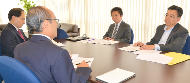2016年の日伯法律委員会の組織変更として松下理一委員長(パナソニック)の後任として内山元雄委員長(丸紅ブラジル会社)が就任、2016年3月11日、丸紅ブラジル会社の池田聖取締役並びに江坂善達取締役が商工会議所を訪問、応対した平田藤義事務局長並びに日下野成次総務担当と活動方針などについて意見交換を行った。