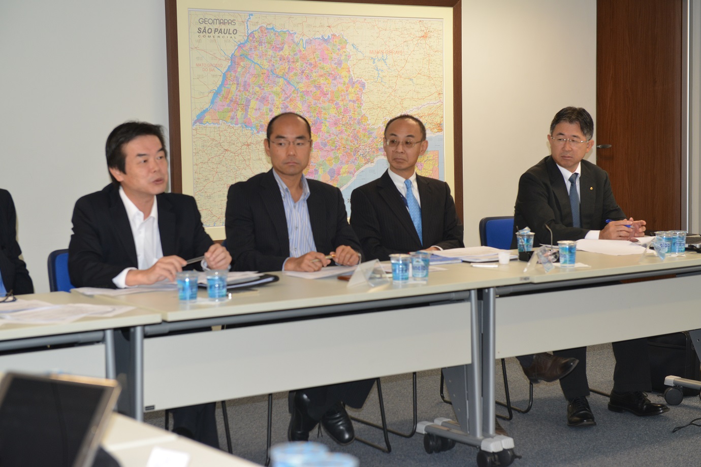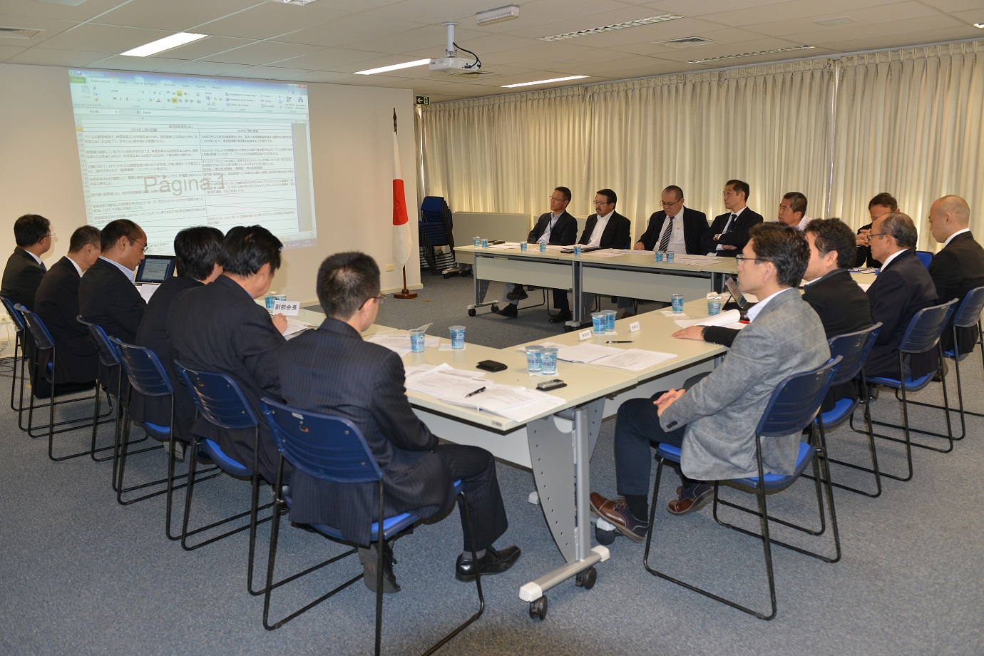 参加者は細谷部会長(日通)、宮川副部会長(NYK LINE)、長合副部会長(NTT DATA)、桟氏(Boxon)、谷口氏(栄進)、稲垣氏(JAL)、金子氏(K-Line)、小宮氏(ツニブラ)、堤氏(ツニブラ)、岐部氏(UBIK do Brasil)、江上氏(WEC)、大久保所長(ジェトロサンパウロ)、蛭子領事(サンパウロ総領事館)、平田事務局長、天谷アドバイザー、吉田調査員