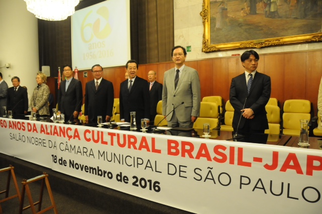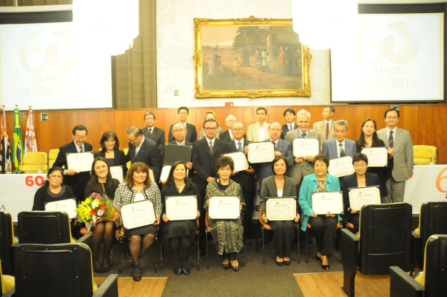 11月18日、創立60周年を迎えたアリアンサ(大城幸男理事長)はサンパウロ市議会で記念式典を開催した。