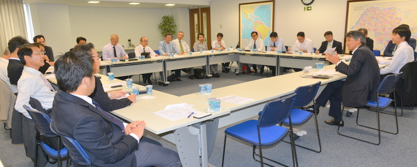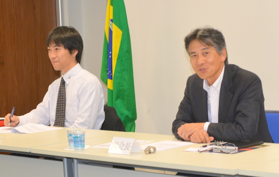 参加者は池辺部会長(日立サウスアメリカ)、馬場副部会長(kobelco)、渡辺氏(カワサキ)、成塚氏(キョーセラ)、馬場氏(三菱重工)、牧野氏(CBC)、井川氏(AMADA)、岡本氏(Mineral Brasil)、河合氏(NTN Dariveshaft)、岡本氏(MMC)、WAKI氏(NSK)、伊藤氏(SINTO)、小湊氏(KBK DO BRASIL)、永安氏(TMEIC)、北原氏(ヤンマー)、高橋氏(JFE SHOJI)、長谷川氏(ユシロ)、小野沢氏(荏原製作所)、蛭子領事(サンパウロ総領事館)、平田事務局長、天谷アドバイザー、吉田調査員、大角編集担当