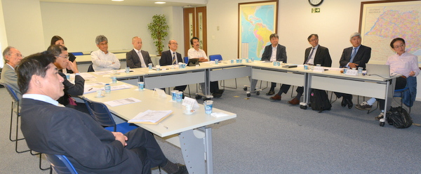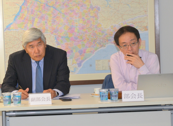 参加者は千野部会長(ソニー)、高田副部会長(NECラテンアメリカ)、磯村副部会長(エプソン パウリスタ)、君崎副部会長(ムラタ ワールド)、深井氏(みずほ銀行)、西口氏(みずほ銀行)、伊豆山氏(CIS Eletronica)、大沢氏(キャノン)、三井氏(エプソン パウリスタ)、蛭子領事(サンパウロ総領事館)、平田事務局長、大角編集担当