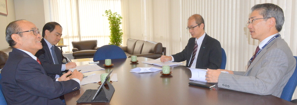 異業種交流委員会の井上 秀司委員長並びに伊藤 卓哉副委員長が2017年6月30日に商工会議所を訪問、応対した平田藤義事務局長並びに日下野成次総務担当と今年の委員会活動について意見交換を行った。