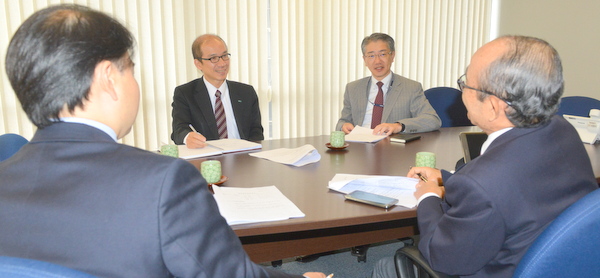 左から平田藤義事務局長/日下野成次総務担当/異業種交流委員会の伊藤 卓哉副委員長/井上 秀司委員長