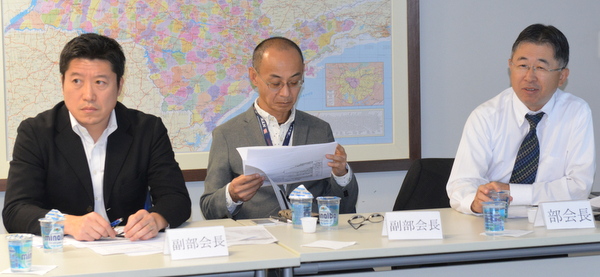 左から矢澤副部会長(NTT)/宮川副部会長(NYK LINE)/細谷部会長(日通)