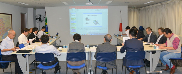参加者は細谷部会長(日通)、宮川副部会長(NYK LINE)、矢澤副部会長(NTT)、谷口氏(栄進)、稲垣氏(JAL)、大胡氏(MOL)、金子氏(K-Line)、小宮氏(ツニブラ)、堤氏(ツニブラ)、江上氏(WEC)、井上氏(UBIK)、藍原副領事(サンパウロ総領事館)、平田事務局長、吉田調査員、大角編集担当