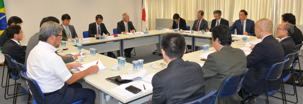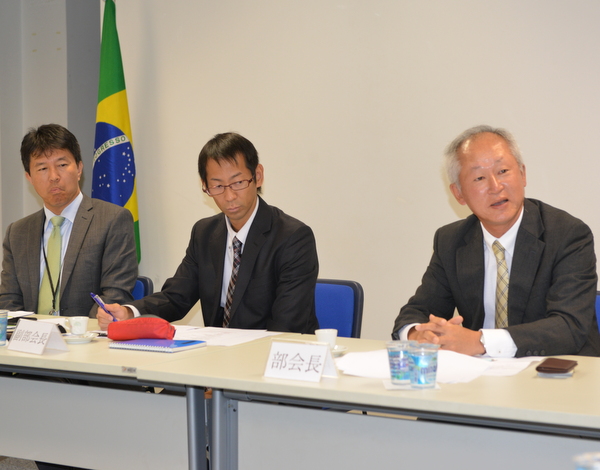 参加者は安田 部会長(Sompo Seguro S.A.)、小渕副部会長(Banco Bradesco)、岡本副部会長(Sompo Seguro S.A.)、栗原氏(Banco Sumitomo Mitsui Brasileiro S.A.)、田中氏(Banco Sumitomo Mitsui Brasileiro S.A.)、井上氏(三井住友保険)、長野氏(三井住友保険)、津田氏(Banco Bradesco)、木下氏(ブラジル三菱東京UFJ銀行)、石川氏(トヨタ銀行)、東氏(ブラジル東京海上日動火災保険)、大久保氏(ジェトロサンパウロ事務所)、蛭子領事(サンパウロ総領事館)、平田事務局長、吉田調査員、大角編集担当。