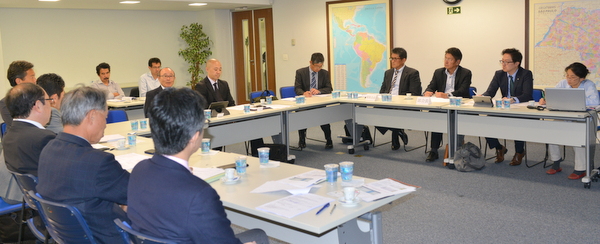 参加者は奥地部会長(戸田建設)、釘本副部会長(CGC)、大滝氏(ホス建設)、森口氏(スターツ ブラジル)、上岡氏(戸田建設)、宮島氏(Ecogen)、菅野氏(FLEX PQ EMPRESARIAL)、酒井氏(戸田建設)、武藤氏(清水建設)、宮下氏(三菱電機)、蛭子領事(サンパウロ総領事館)、平田藤義事務局長、吉田調査員、大角編集担当