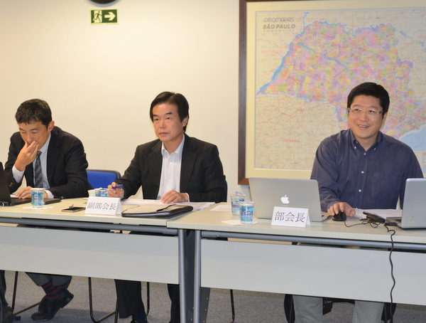 左から吉田副部会長(日本郵船ブラジル)/稲垣副部会長(ブラジル日本航空)/矢澤部会長(NTTブラジル)