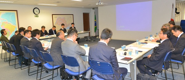 参加者は植田部会長(伯国三菱重工)、馬場副部会長(kobelco)、杉本氏(Marubeni-Itochu)、吉川氏(Yokogawa)、池辺氏(日立)、岡田氏(コマツ)、平野氏(キョーセラ)、山田氏(三菱重工)、根岸氏(Azbil do Brasil)、岡本氏(MMC)、加治氏(出光)、WAKI氏(NSK)、長谷川氏(Camozzi do Brasil)、小野沢氏(荏原製作所)、渡邊副領事(サンパウロ総領事館)、吉田調査員、大角編集担当