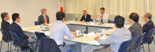 参加者は総務委員会の北村裕行副委員長(みずほ銀行)、電気電子部会から高田正純部会長(NEC)、三井和美副部会長(エプソン)、田島友昭副部会長(パナソニック)、宮下副部会長(三菱電機)、運輸サービス部会から宮川俊介部会長(Ocean Network Express)、水守信介副部会長(NTT)、平田事務局長、日下野総務担当、大角編集担当。