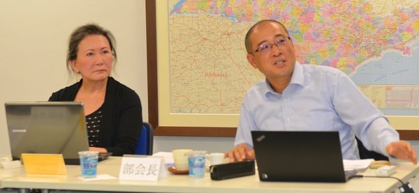 参加者は吉田部会長(KPMG)、今井副部会長(VMPG)、山下氏(YACON)、桟氏(BOXON)、マルセロ・カルガノ氏(Abe Adovogados)、上野氏(UENO PROFITO)、赤嶺氏(人材銀行)、土屋氏(ASAP CONSULTORIA EMPRESARIAL)、塚本氏(Braszil Supoprt Service)、中野副領事(サンパウロ総領事館)、大角編集担当