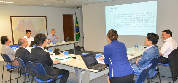 参加者は宮川部会長(ONE)、湯原副部会長(NYKブラジル)、今安副部会長(ブラジル日本航空)、濱口氏(ONE)、内村氏(ブルーツリーホテル)、金子氏(K-Line)、中野副領事(サンパウロ総領事館)、平田事務局長、大角編集担当