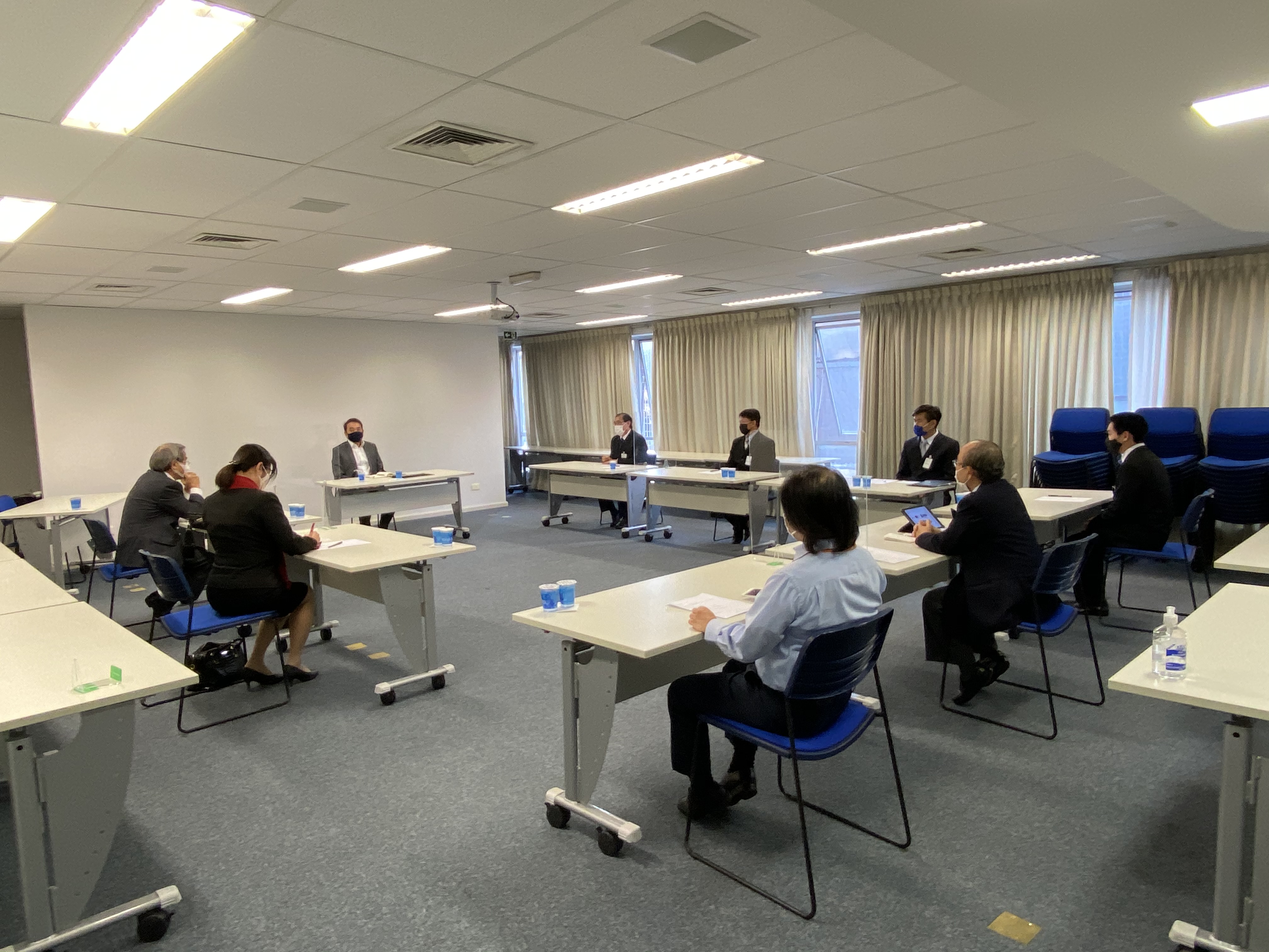 参加者は異業種交流委員会の長野委員長(三井住友海上ブラジル)、板垣副委員長(パナメディカル)、村田副委員長(鈴与ブラジル)、医療法人MED lINE社から代表の佐藤ネルソン産業医、マウロ・カナシロ総務担当取締役、ウンベルト・ナベラ営業担当取締役、佐藤ヴェンデル取締役、会議所から平田事務局長、日下野総務担当、上田アシスタント、大角編集担当