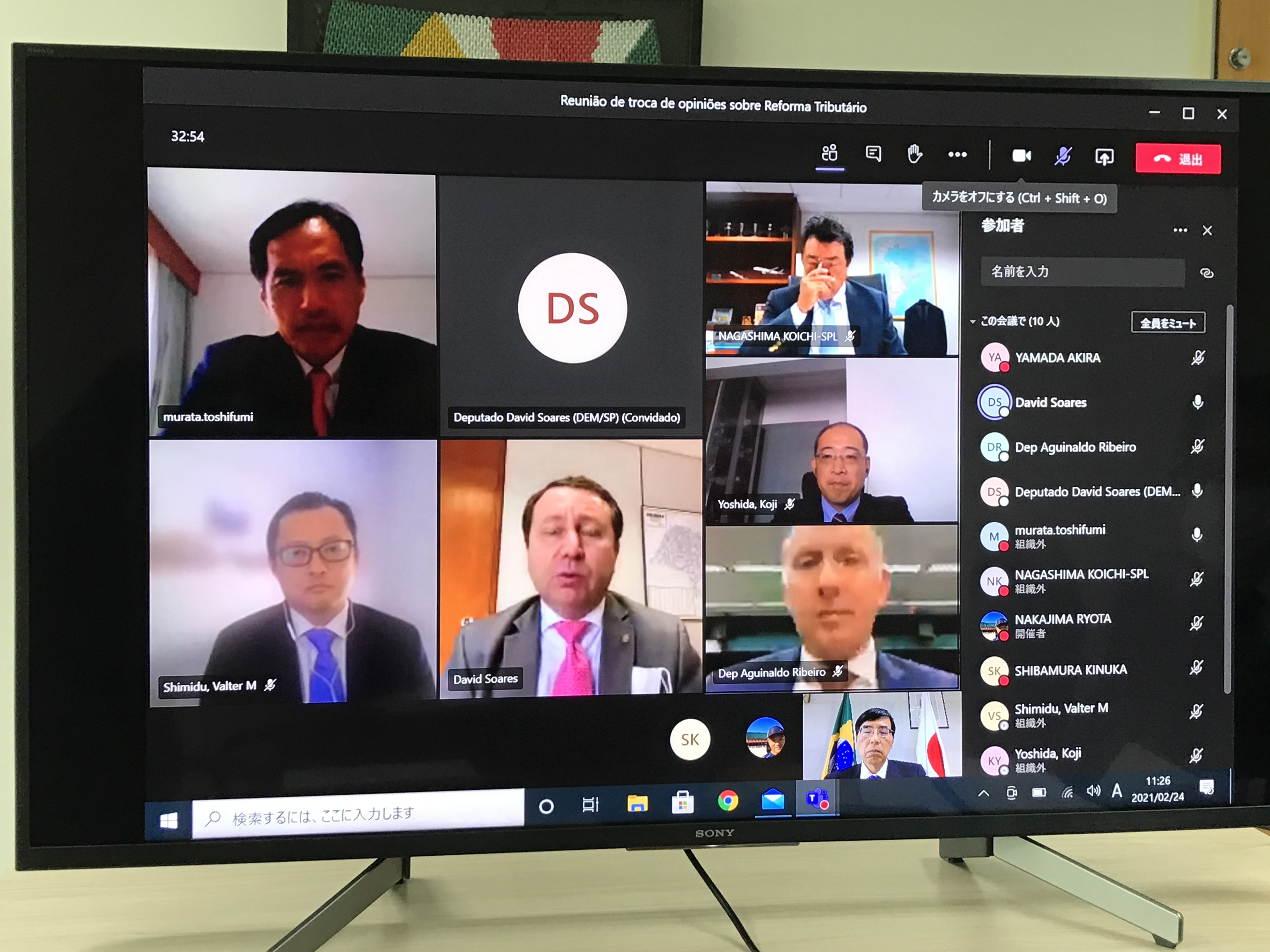 2021年2月24日午前11時から正午まで、在ブラジル日本大使館主催でダヴィド・ベゼーハ・リベイロ・ソアーレス下院議員、アギナルド・リベイロ下院議員と会議所関係者のオンライン会合が開催された。