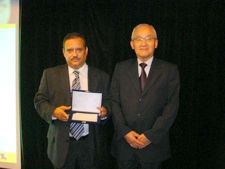 押切委員長からアウド・コスタ・フィーリョにプレートの贈呈