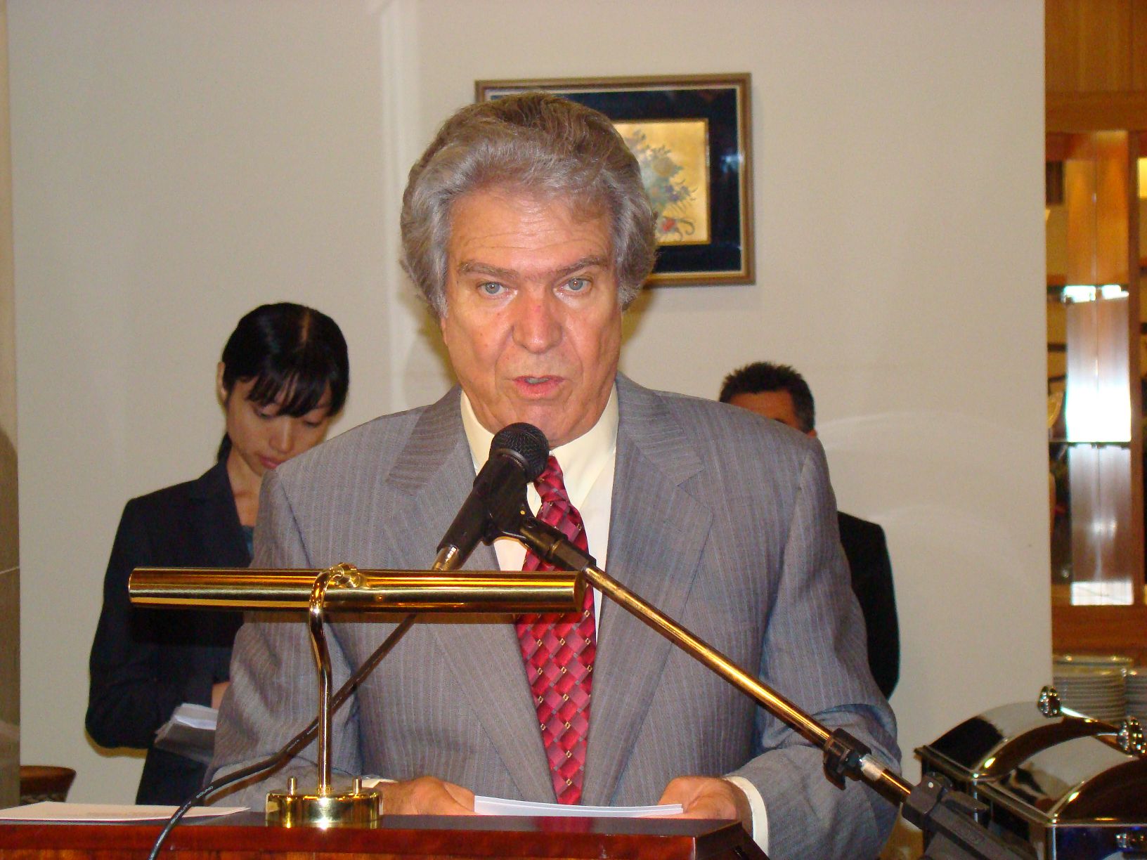 16日、ロビー活動強化に島内憲はブラジリアで南米各国の大使と会合を持ち、ブラジルで開発した最先端技術の日伯方式を紹介した。
