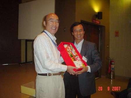 ペドロ・イサム・ミズタニ副社長に日本酒の贈呈をする渡邉部会長